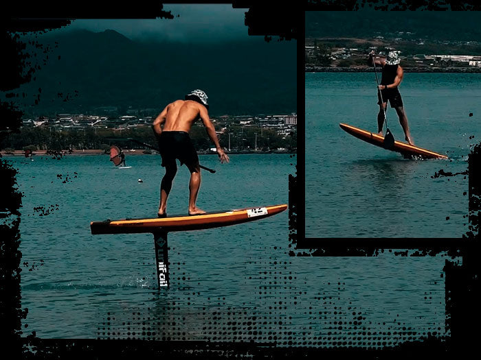 So what you want to do is work on that lunge when you start getting lift off and putting all your weight on the front quad and leaning over and continuing that paddle because those three paddles when you first get lift off are the most important to continue your roll on foil. A lot of people they'll get lift off and then they'll lose balance and lean back and then stall out. So what you have to do, I just kind of call it like man handling it. So you just kind of paddle and then once you get lift off, continue that lunge forward and do three extra paddles. A lot of people when they get that lift off, they'll just stop and they'll try and pump and then they'll stall out. So just continue that paddle that's going to help you a lot to get on foil those continuing paddles at the end of your paddle up process will help you get you on foil and stay on foil.