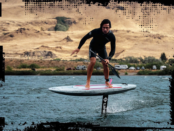 Once you start getting the board bouncing along the water, the next tip or trick is that you want to finesse the foil. You don't want to be bouncing up and down like an ape trying to get that board up on foil because all you're going to do is stall the foil out if you're not going fast enough, which you're probably not going to be if you're beginning and your technique’s not that good. What you want to do is just little pumps. All this is going to do is create a little wiggling motion that's eventually going to get you up on foil versus big stomps that just stall the foil out. Just think when you're paddling and doing your technique that you're finessing, you're just slowly pumping, and then eventually working up your cadence to bigger pumps.