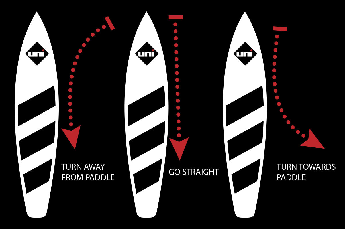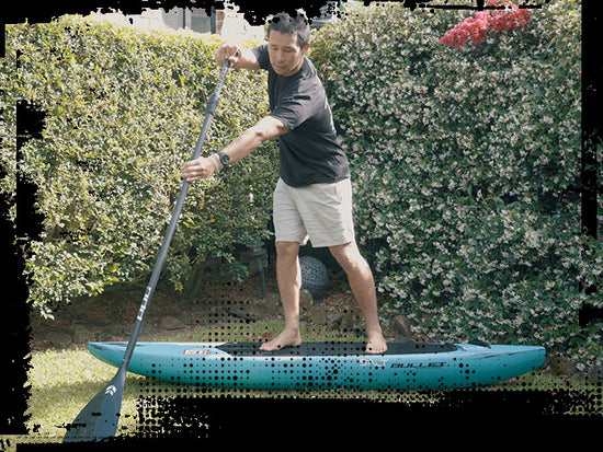 The biggest thing when you start paddling is that you'll realize whatever side you paddle on, whether you're goofy like me or natural, is that you are going to paddle in a circle. So what you need to learn is how to J stroke. So with the J stroke, you start, if you want to go left and you're goofy, you want to start out and pull in like a “j”. And that will make you paddle straight. This is something that you just have to learn and is all technique. If you try and paddle just in a straight line, you will just go right, and you won't be able to go the direction you want to go or paddle eventually into a bump, straight. So just work that technique.