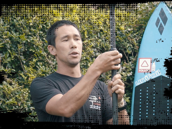 The most important part of the tuning process is figuring out where the mast goes. This can be make or break between you getting the board on foil or just not even getting lifted off. So what I highly recommend is that if you can somehow get someone to film you while you're doing paddle up, and there you can see if your foot is well in front of the mast or well behind the mast when you're paddling up, this will define whether you're getting lift off or not. What I like to do as well is when I'm paddling on the board, I like to try and roll the board over on my feet and see where my feet are in relation to the mast.