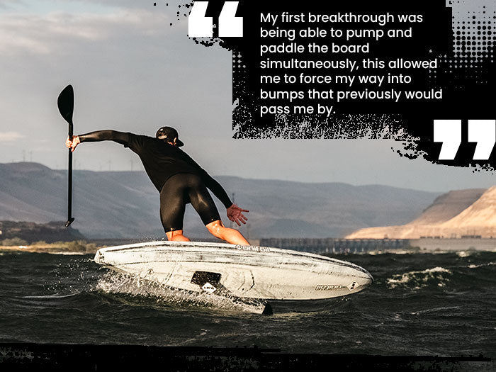 My first breakthrough was being able to pump and paddle the board simultaneously, this allowed me to force my way into bumps that previously would pass me by.The pump & paddle led me to my 2nd big breakthrough, patience. Now being able to catch and force my way into more bumps, I knew exactly what I was looking for, and learned to wait for it.