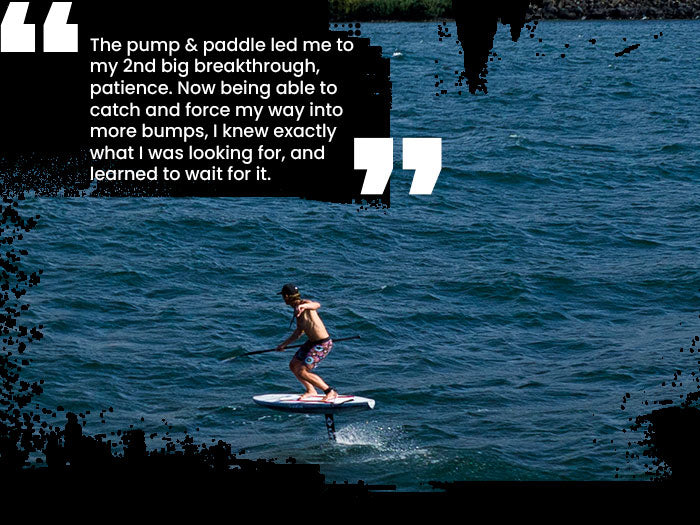 Initially I needed a lot of planing speed to pace bumps and stroke down a steep face and onto foil.Once I could paddle and pump up onto foil, without the need of a steep drop, I could be patient, save energy, and wait for the easy entries. Such a game changer.