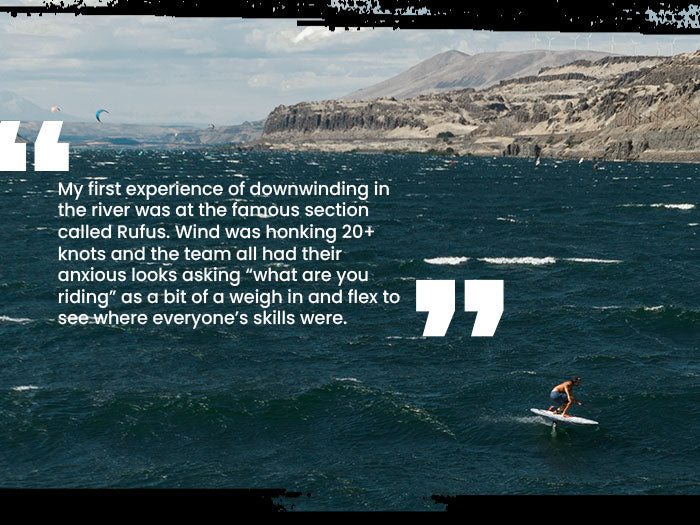 I flew into Portland where my team mate Erik Antonson was getting in the same time from Florida with his family. We all got in the rent a car and headed toHoodRiver.My first experience of downwinding in the river was at the famous section called Rufus. Wind was honking 20+ knots and the team all had their anxious looks asking “what are you riding” as a bit of a weigh in and flex to see where everyone’s skills were.