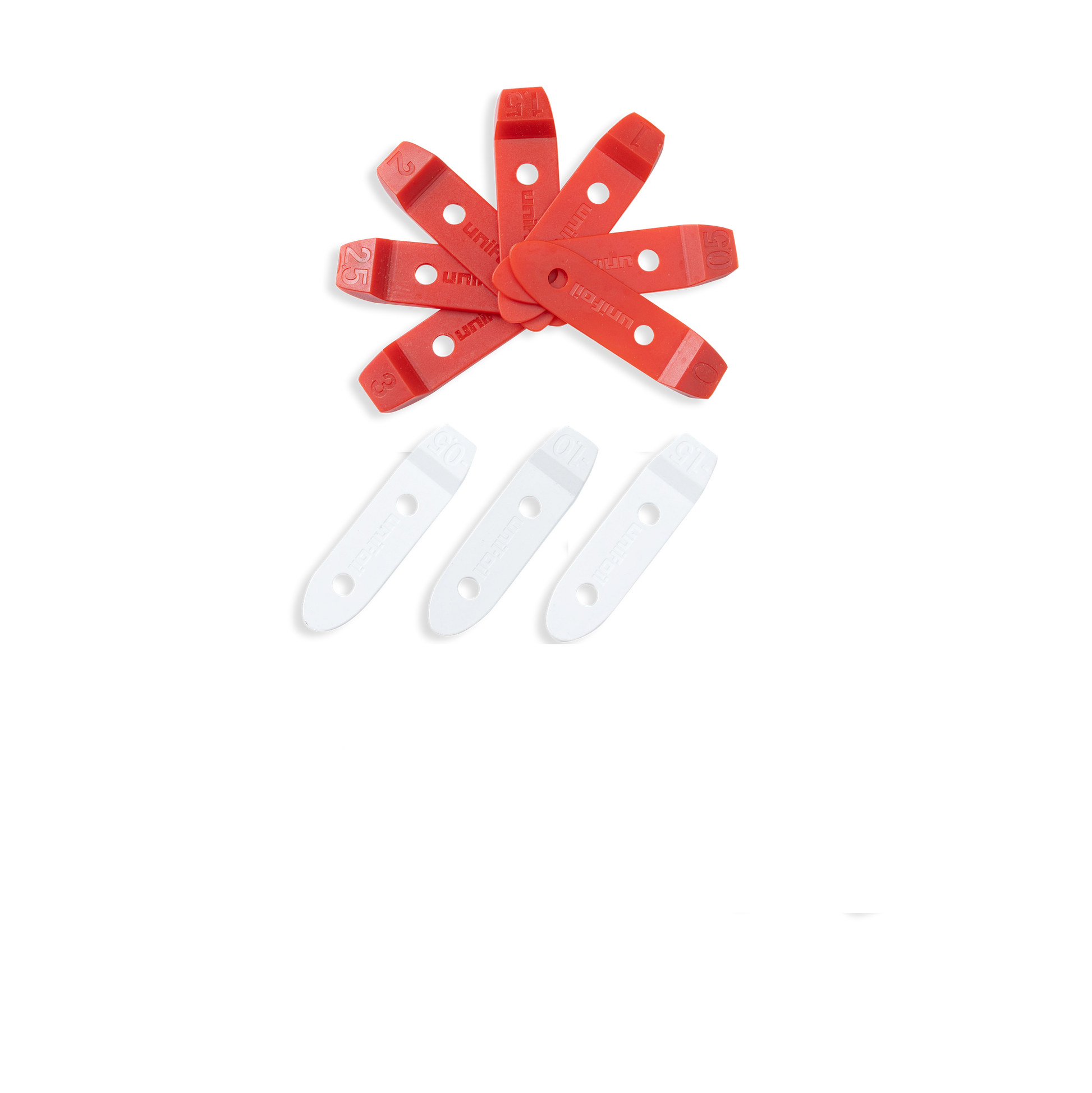 Dial in your foil with small, repeatable adjustments. The Unifoil .5 Degree Shim Set includes both positive (red) and negative (white) shims so you can fine-tune stabilizer angle and overall pitch feel.