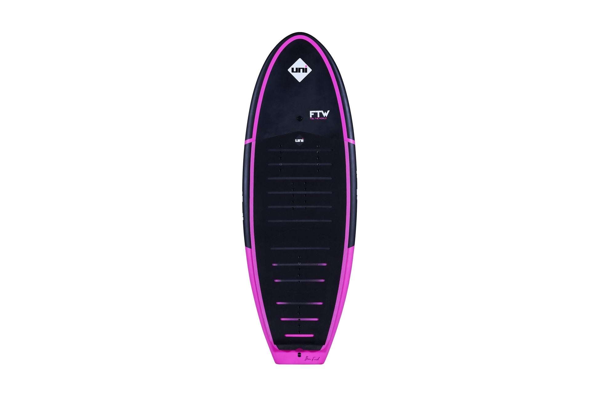 The FTW is the signature model of Brian Finch. The FTW is a low volume, narrow, light weight, highly reactive shape designed to meet the demands of top performance foiling. The light concave deck exaggerates heel to toe pressure while the flat bottom and hard rails shear away water on touch downs and bashing the lip and foam, and increasing control. The FTW is a great crossover board, ideal for strapped foiling, surf foiling, wake foiling, and dock starts.