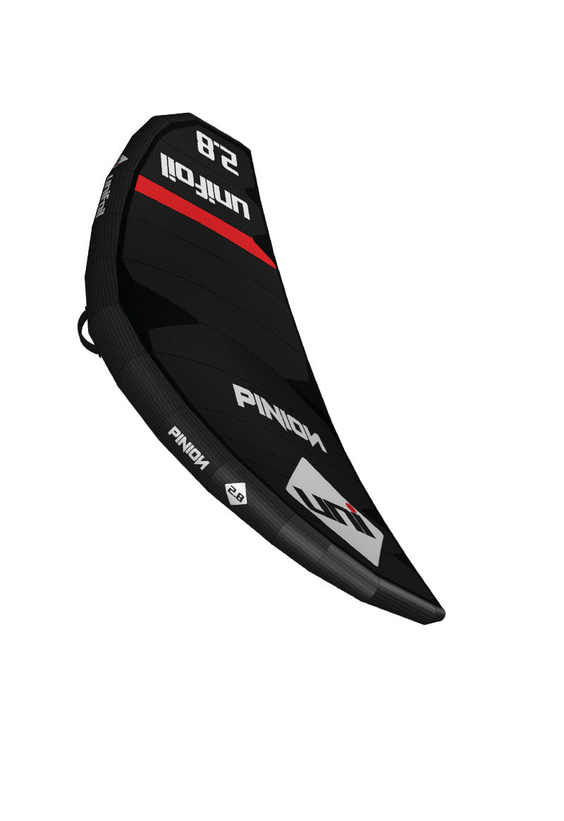 The Pinion is a wing that works for the widest possible range of abilities and conditions. Featuring a mid-aspect outline, more balanced low-end power and wind range, but with a moderate dihedral for stability. The v-shape profile improves flag stability for downwinding and riding waves.